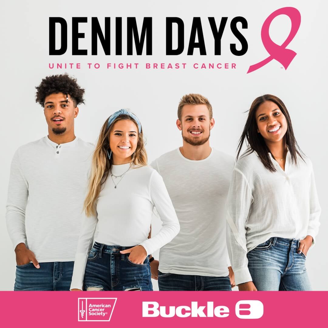 *The American Cancer Society does not endorse any product or service. Valid on every pair of regular-priced jeans purchased from October 4-25 from participating brands. As the presenting sponsor, Buckle has committed to a minimum contribution of $350,000 for this cause.